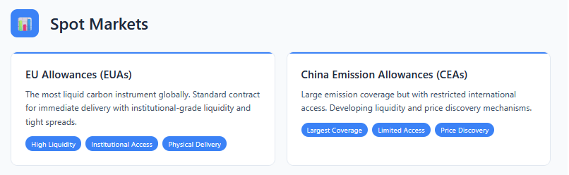 The carbon market ecosystem encompasses various instruments catering to different investor needs and risk profiles with the most popular ones include: